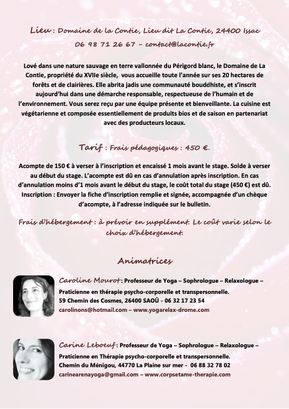 Stage 6-9 Juin 2025: « Se ressourcer dans l’espace du coeur », Hatha Yoga, Yin, Nidra – Normandie